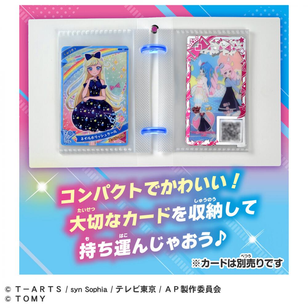 3種類のカード(アイプリカード、ミルフィーカード、プリフォト)を収納できる。キラキラがかわいい、ダイアリーデザインのカード収納アイテム♪持ち運びに便利なサイズで、リフィルはワンタッチで簡単着脱できる!