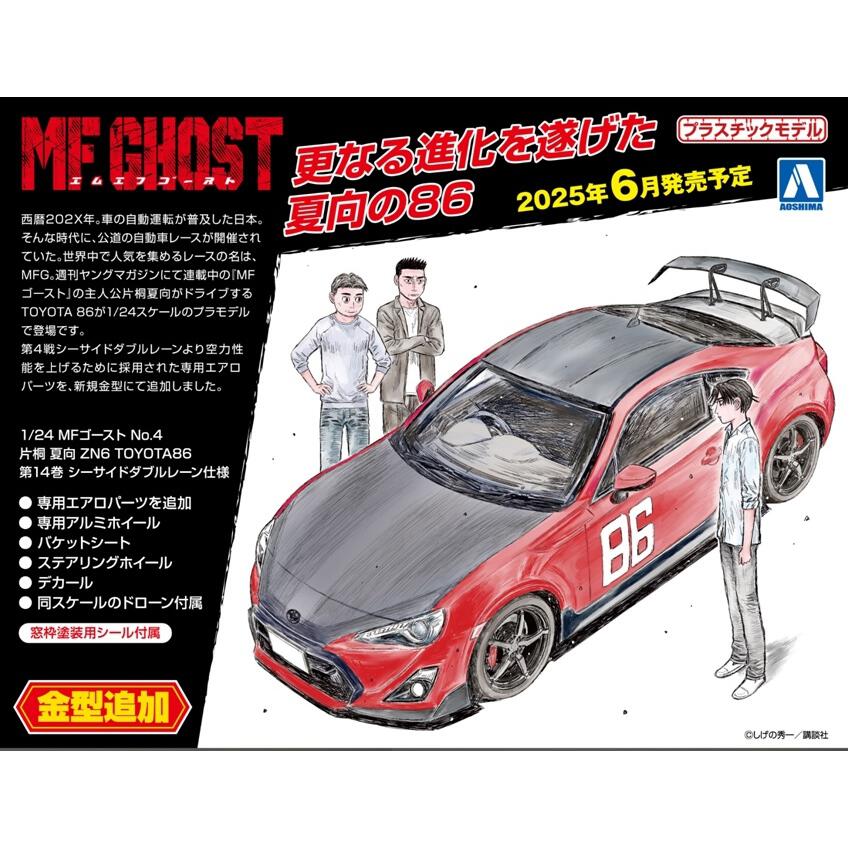 週刊ヤングマガジンにて連載中の『MFゴースト』の主人公片桐夏向がドライブするTOYOTA 86が1/24スケールのプラモデルで登場です。