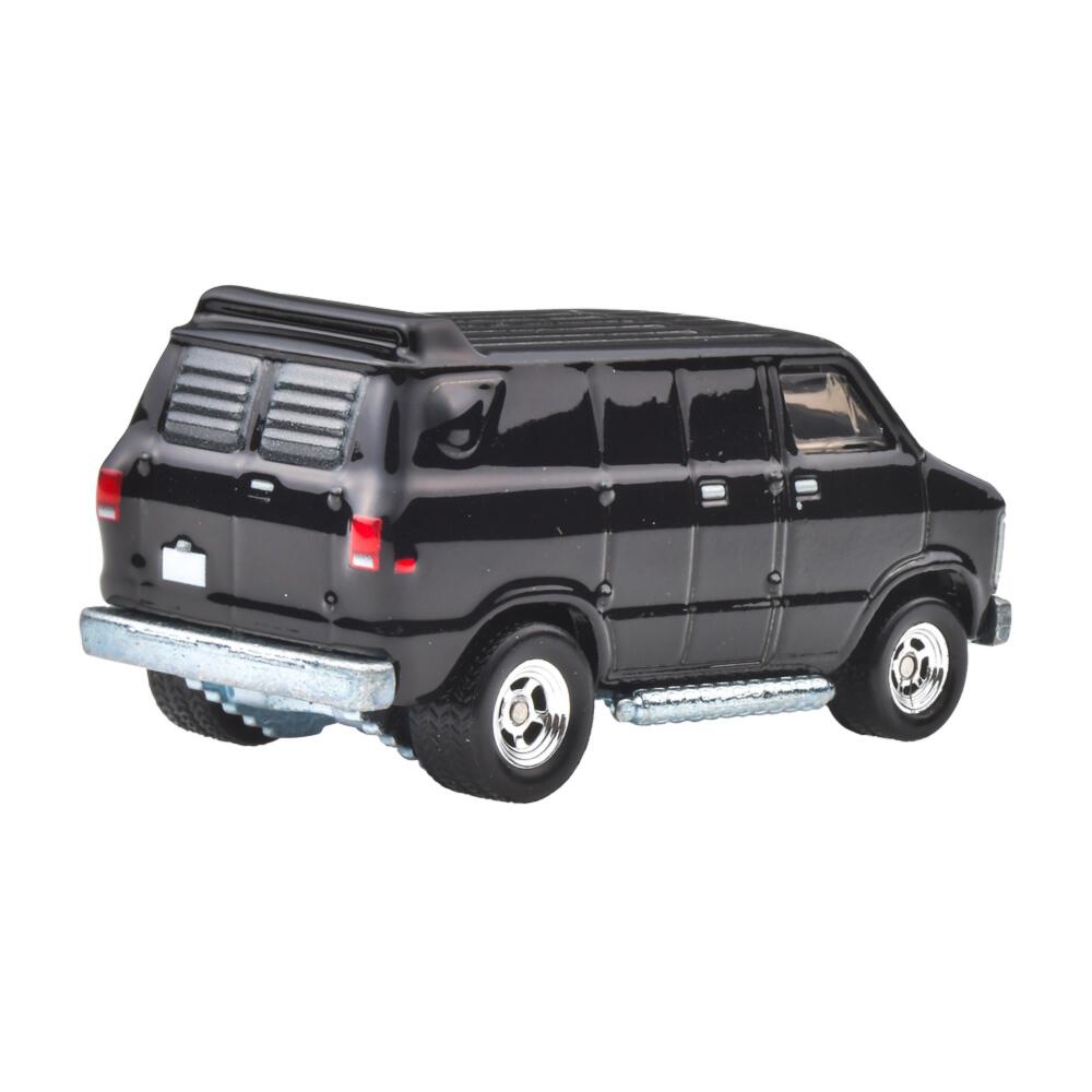 全幅約2m、全長5m前後、そして全高2m程度と、日本で見れば小山のように見える大柄なボディを持ち、パワフルかつ大排気量のV8を主力エンジンとすることで知られる、アメリカのフルサイズバン・カテゴリー。フォード、シボレー/GMC、そしてダッジがそれぞれフルサイズバンを長らくラインアップしてきた。ホットウィールがこの度新金型アイテムとしてデビューさせたのは、ダッジのフルサイズバン、ラムバンシリーズの第2世代(1979~1997年)だ。すでにホットウィールではベーシックカーとして初代(1971~1978年)と3代目(1998~2003年)を製品化しているので、ラムバンの全世代が網羅されたことになる。今回のリリースでは2003年公開のアメリカのコメディ映画、『オールドスクール』に登場する劇中車をモチーフに選んでおり、漆黒のボディに5本スポークのホイール、サイドマフラーや「しずく型」のサイドウィンドウなどその再現度は極めて高い。劇中車を知らなくても、フルサイズバン好きにはたまらない仕上がりだ。