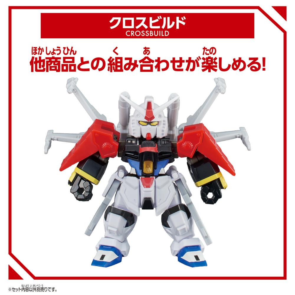 ブロックフレームにクロスパーツを装着する簡単な組立でフィギュアが完成。MSごとに武器等の装着が楽しめます。