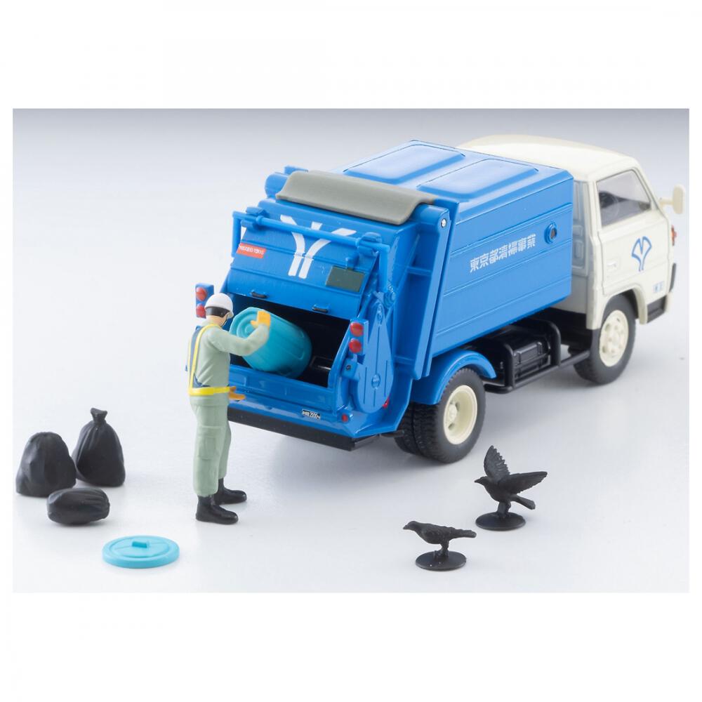 <セット内容>三菱ふそう キャンター 清掃車(1),清掃員(1),ゴミ容器(1),カラスA・B(1),ゴミ袋A・B・C(1),サイドミラー(1)
