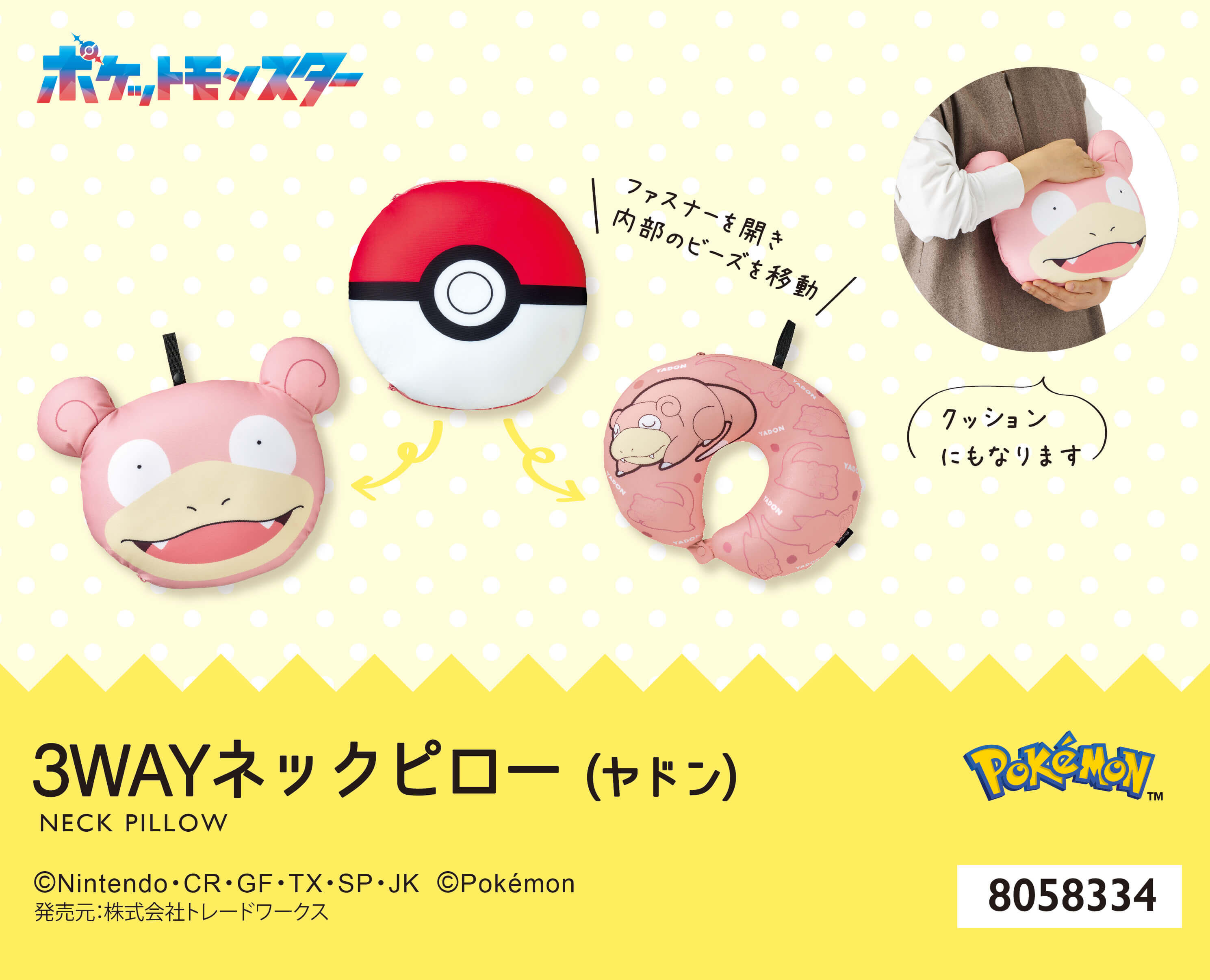 ヤドンがモンスターボール型のクッションになったり、ネックピローになったりと3WAYで使えるネックピローです。