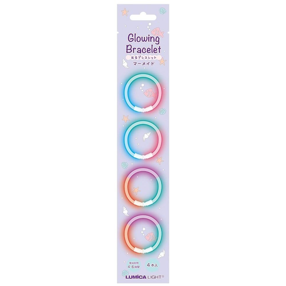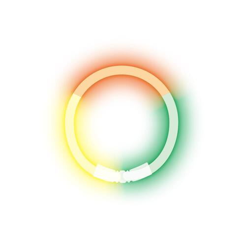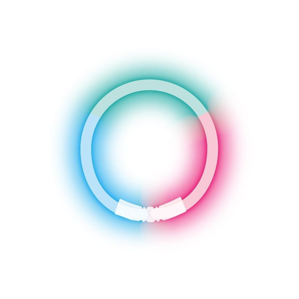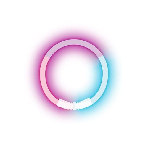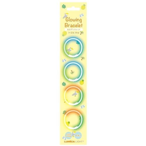 3色の発光液が混ざり合うグラデーションタイプのブレスレット。手首につけて、きれいな色を楽しもう。