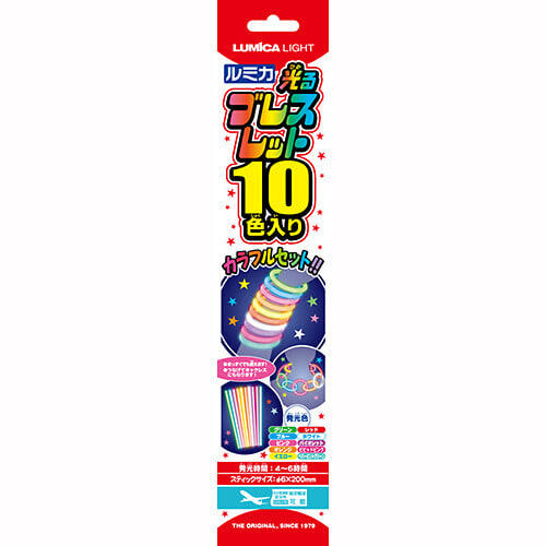 ルミカ 光るブレスレット 10色入り カラフルセット 誕生日 ハロウィン クリスマス パーティー お祭り ペンライト コンサート フェス パーティグッズ