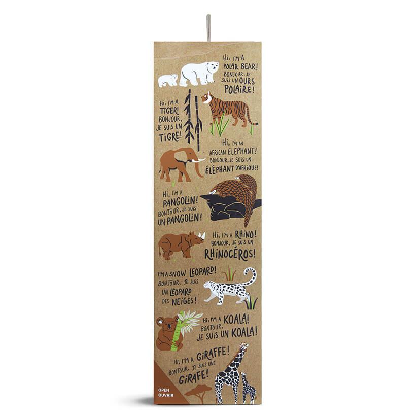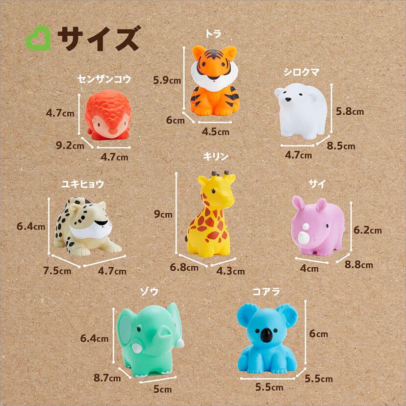アフリカゾウ、キリン、コアラ、センザンコウ、ユキヒョウ、トラ、ホッキョクグマ。