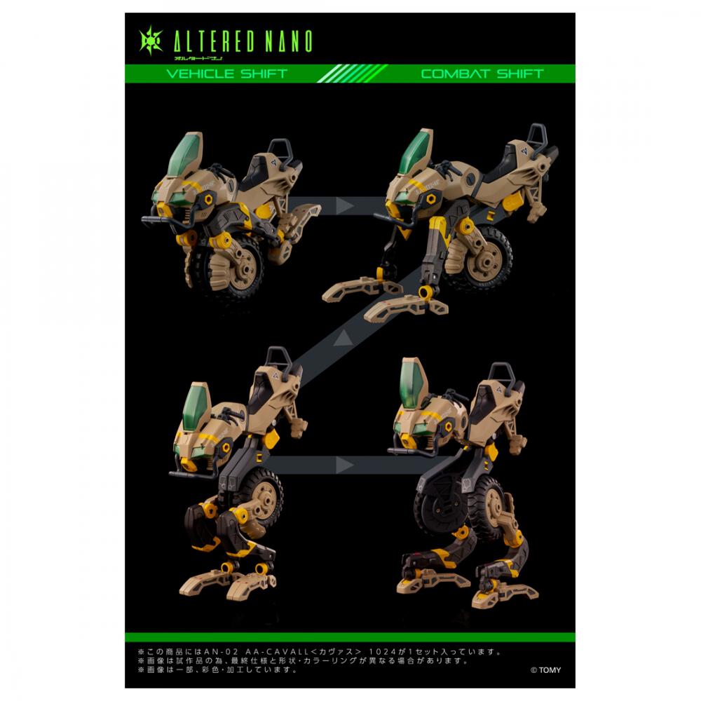 フィギュアデザインを新川洋司氏、メカニックデザインを荒牧伸志氏が手掛ける、全高約10cmに凝縮されたフィギュアとメカニズムの連動により、新たな遊びが発現する。荒牧伸志氏がデザインを手掛けるオルタードナノの連動メカ第一弾。
