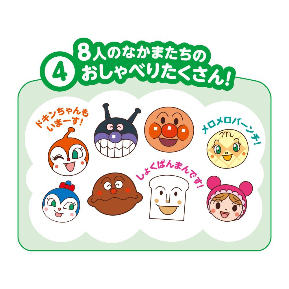 アンパンマンやなかまたちがおしゃべりするモードもあり、アンパンマンとなかまたちと一緒に楽しくはじめての音楽あそびができます。