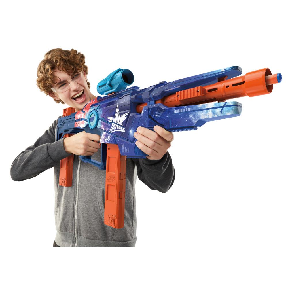 【NERF ロードアウト ギャラクティック・コマンダー ブラスター】伝説級の3つの発射モードと3種のアタッチメントを搭載した全自動モーター式ブラスターで圧倒的な火力を発揮!すべてのNERFバトルで無敵の存在に!