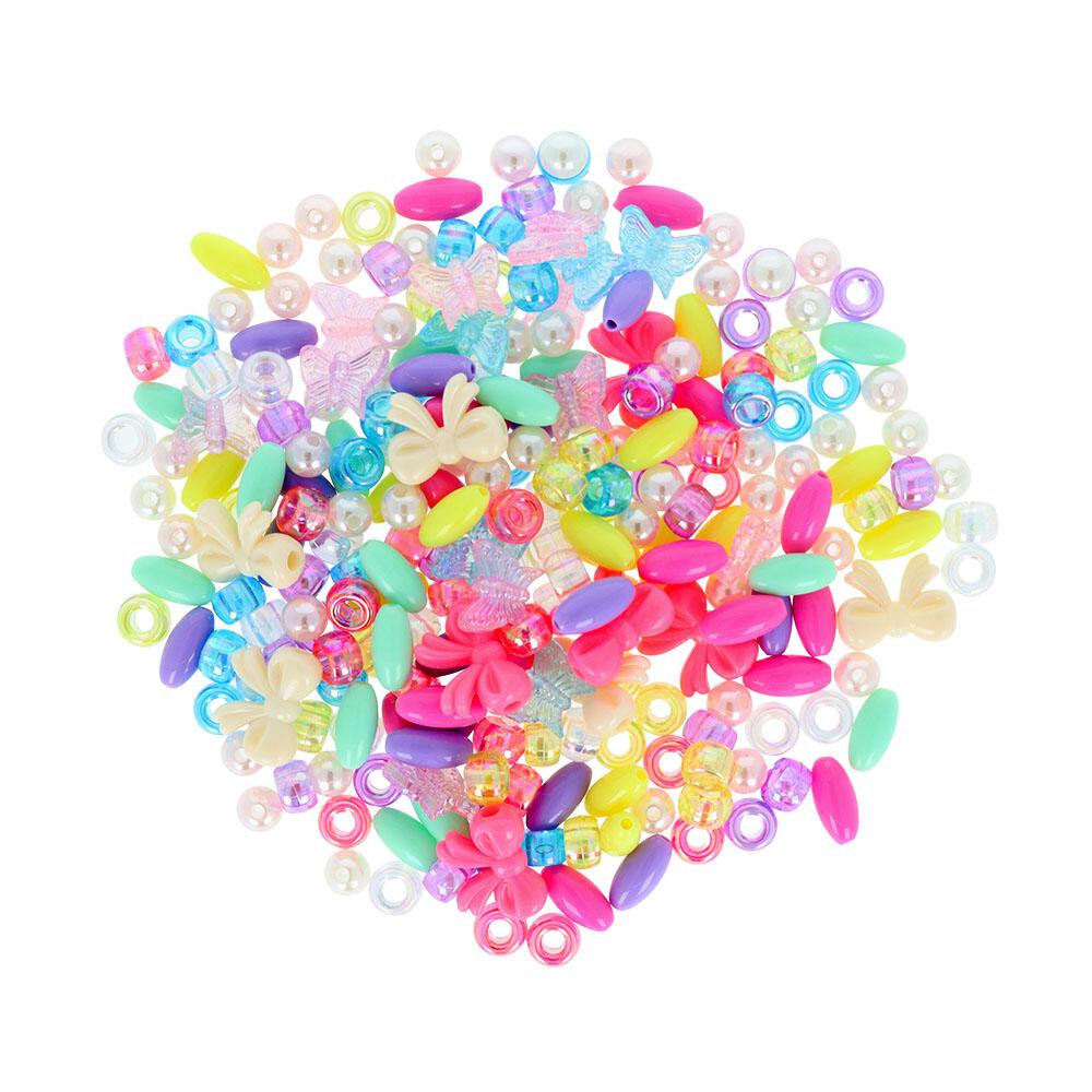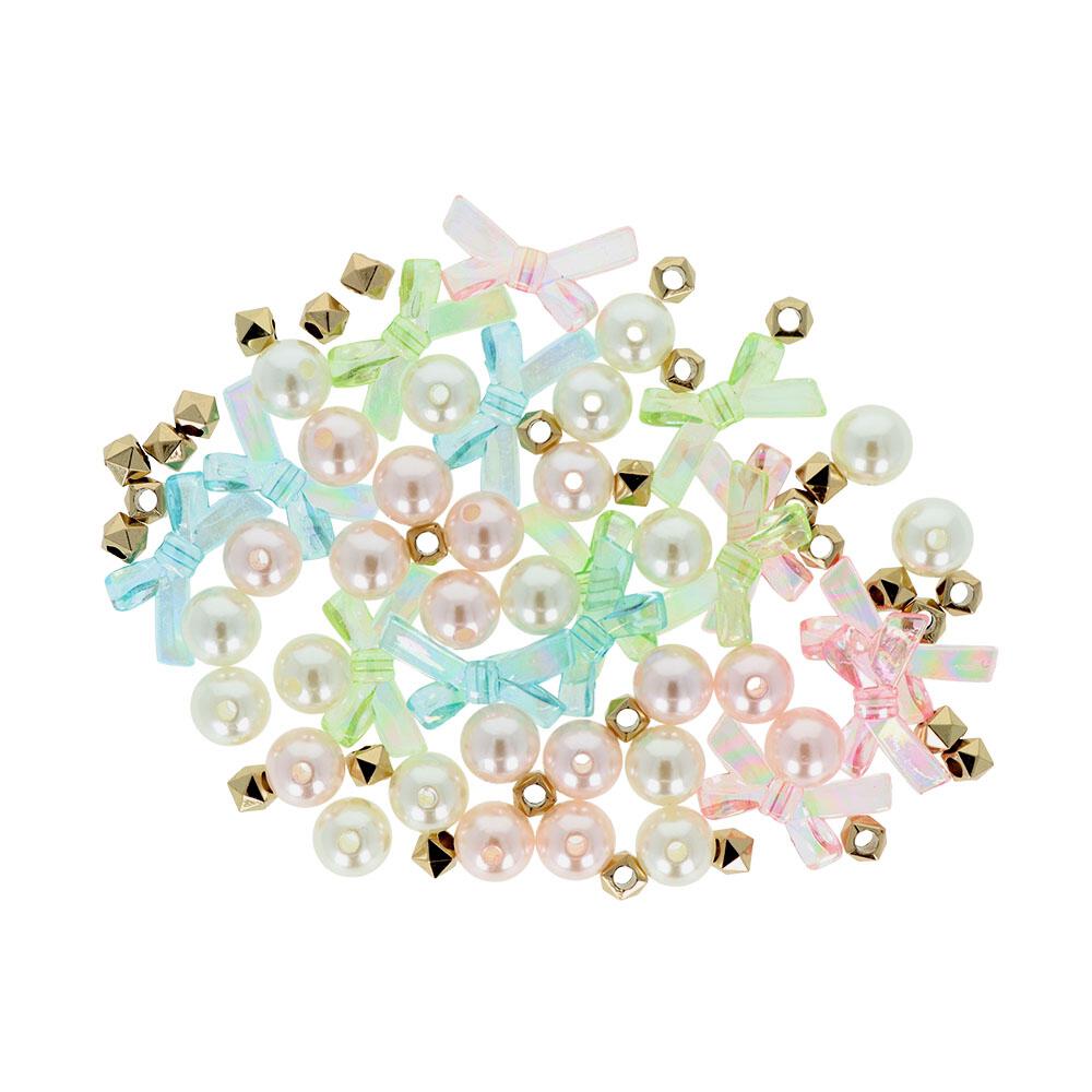 ストーンつきの豪華なシール、カラープレート、デコレーションシールを使ってかわいいチャームが作れます!ビーズもたっぷり約300粒ほど入っています。ブレスレット3本、ネックレス5本が作れるくらいの内容量です。