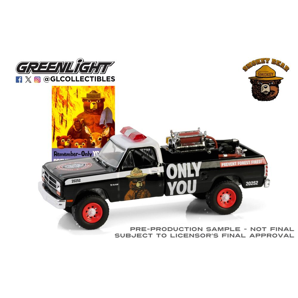 GL 1/64 1987 Dodge Ram D250 w/ Fire Equipment, Hose & Tank -Remember - Only You Can Prevent Forest Fires!-