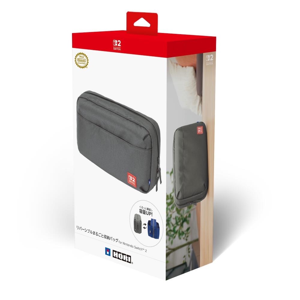 Nintendo Switch 2 本体と小物類をまとめて収納できる、表と裏で収納量が違うデザインのバッグです