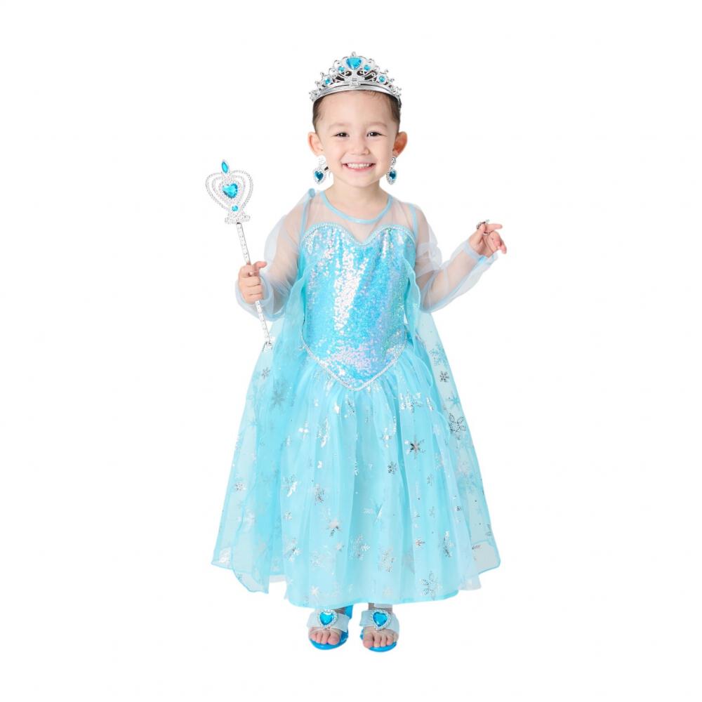 ケープが付いた、かわいいブルーのふんわりドレスです。これを着れば、あこがれのプリンセス気分♪