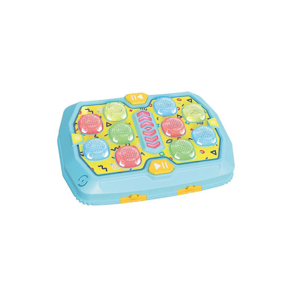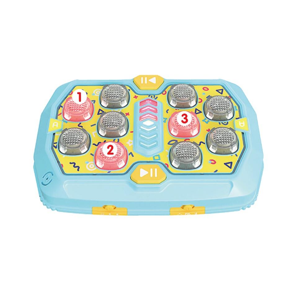 メモリーモード(2人プレイ)=ライトの点灯順を覚えて、その通り押してメロディーを奏でます。1回のミスで負け!