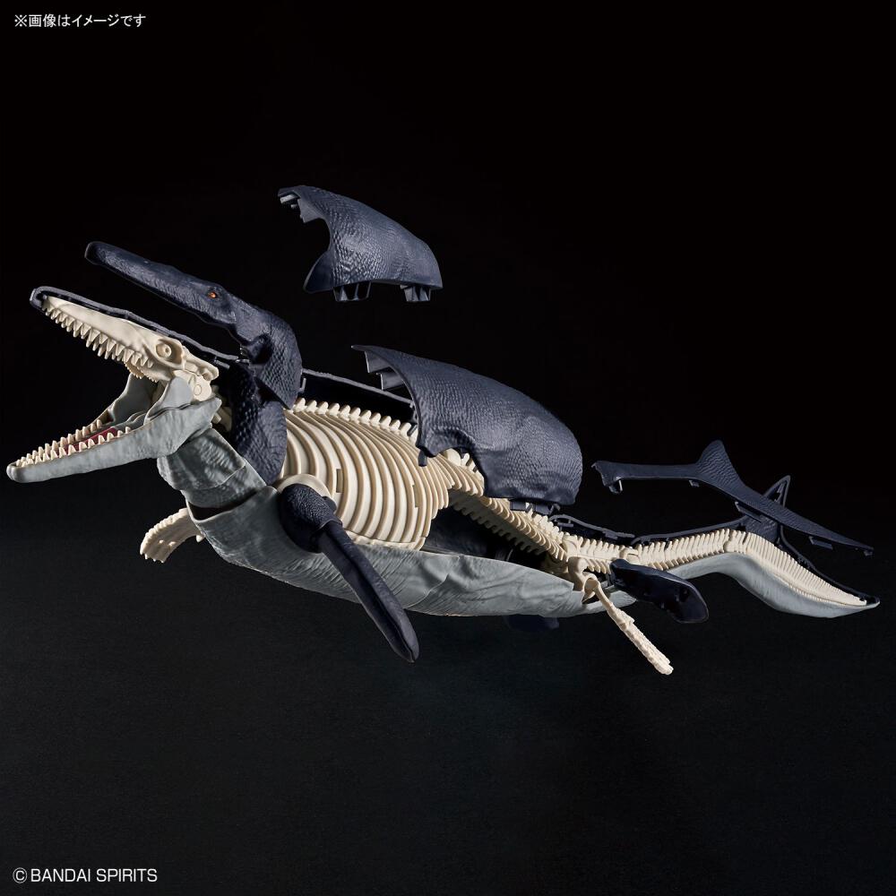 「恐竜ビルド」で骨格の上から外皮パーツを取り付けるプラモデルならではの仕様でモササウルスの姿を復元。