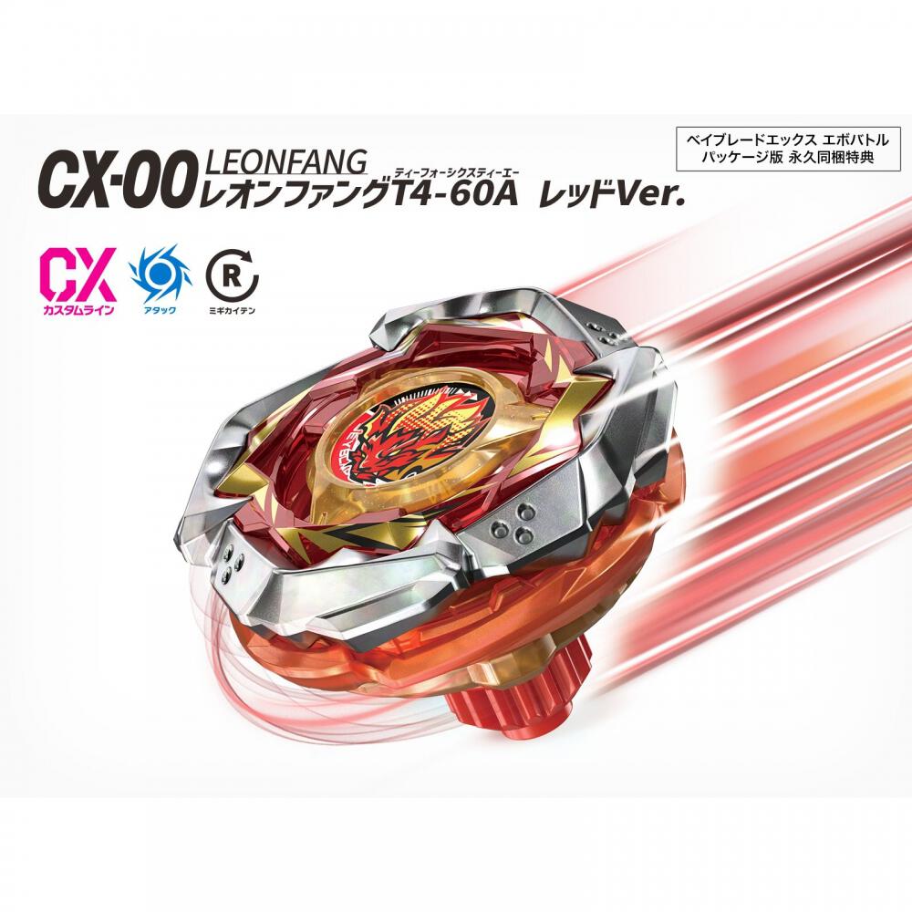 限定カラーの新型ベイブレード「CX-00 レオンファングT4-60A レッドVer.」も同梱!
