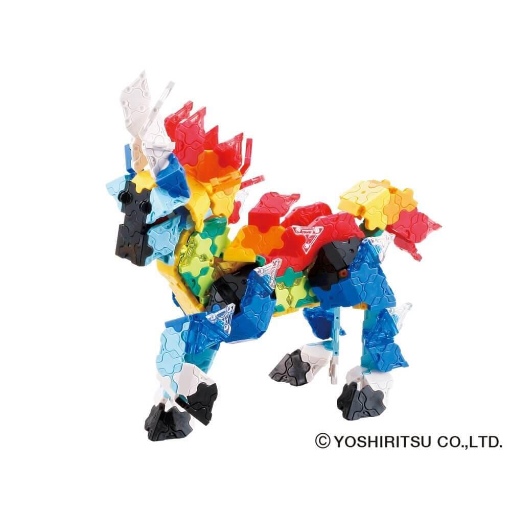 基本色10色+クリアパーツ4色入りで、「麒麟」や「動物」など全部で95種類のモデルに組み替えて遊ぶことができます。