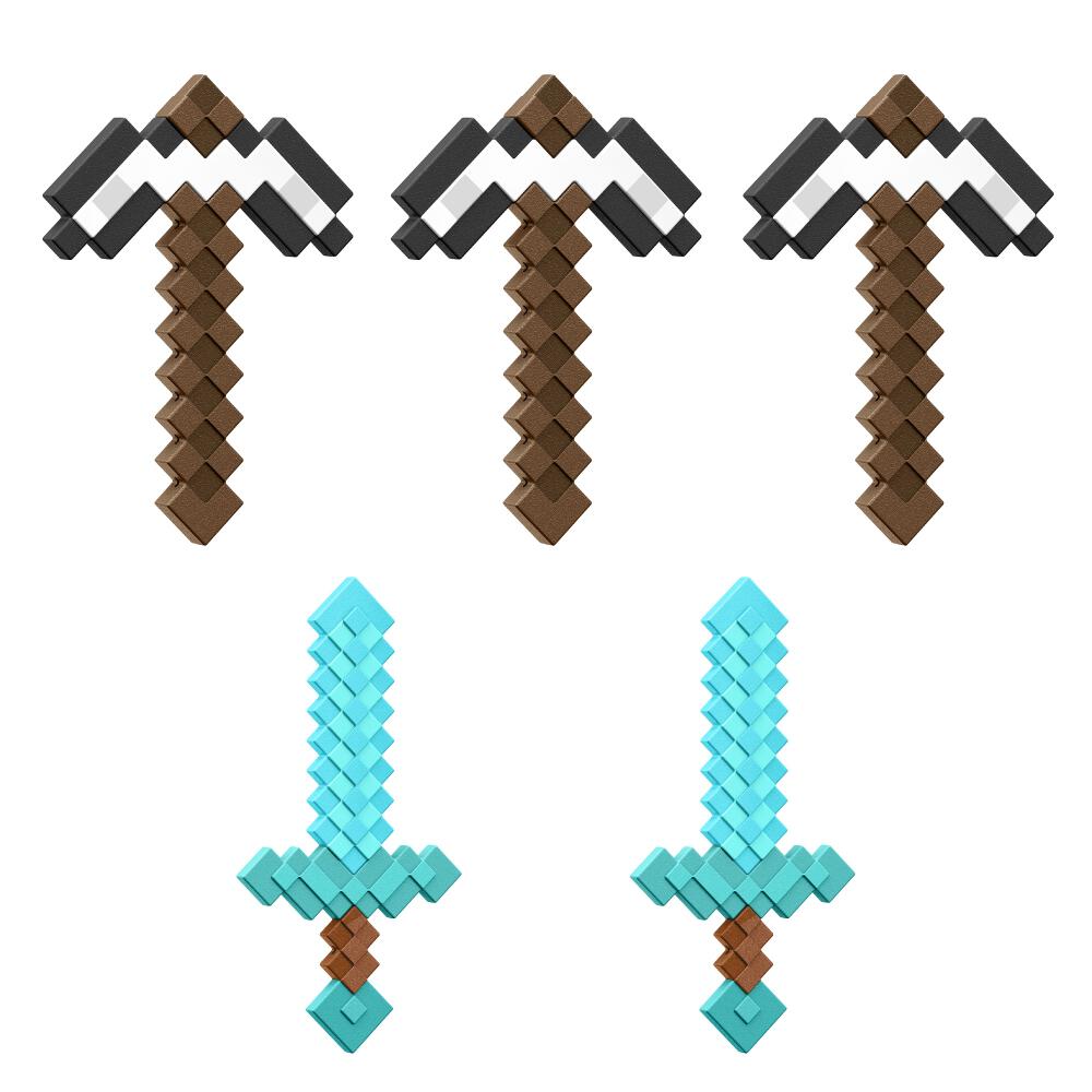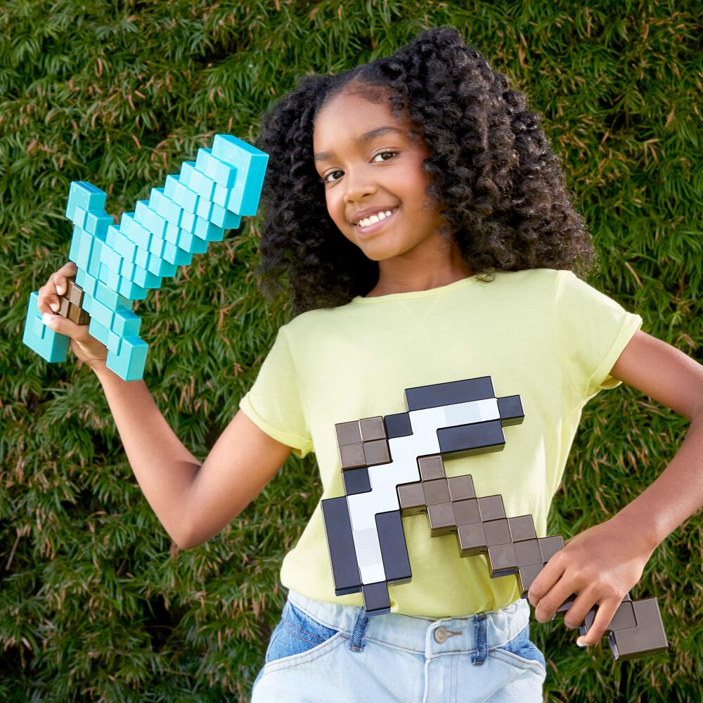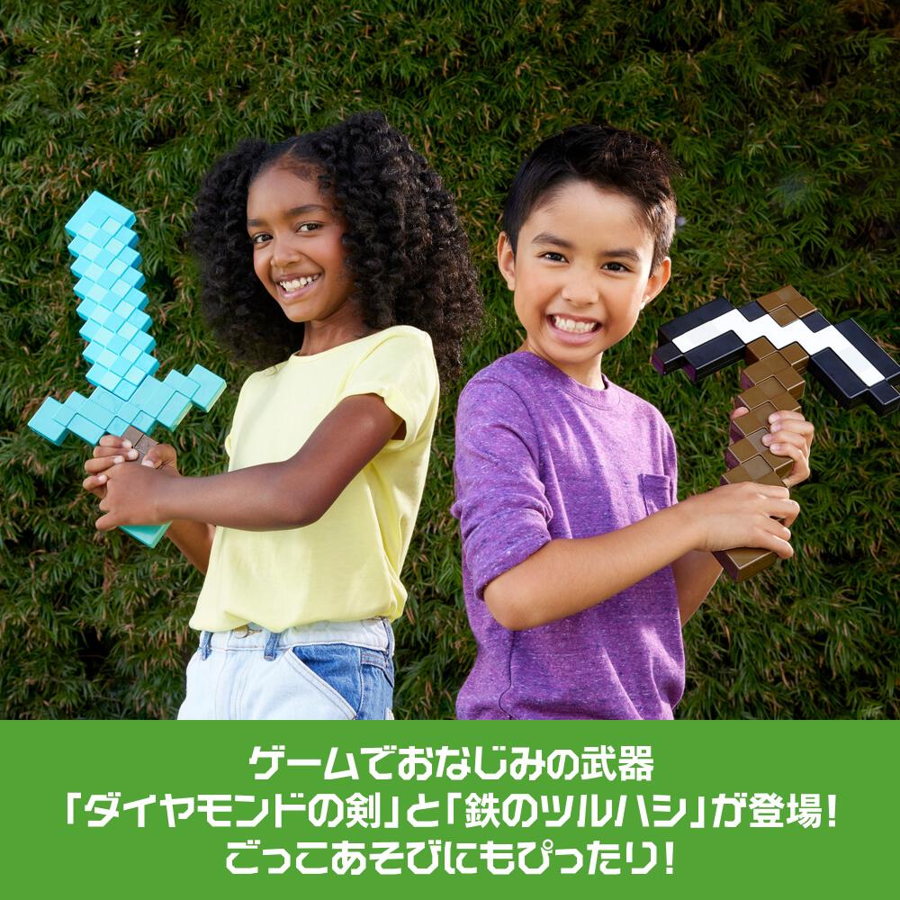 ゲームに登場する、マインクラフトファンならだれもが知っている武器「金のツルハシ」と「石の剣」で、マインクラフトの世界を再現して遊ぼう!