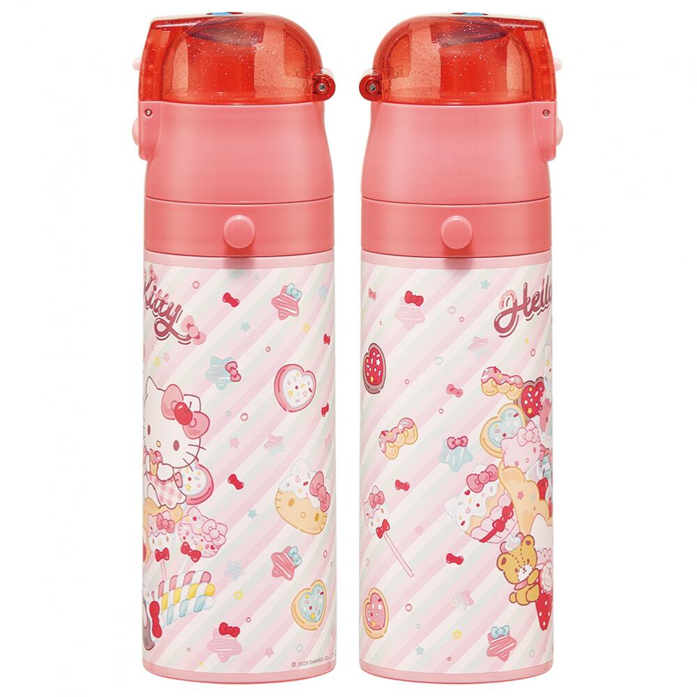 ワンプッシュオープンで、飲みたい時にサッと飲めるステンレスボトル☆ネームプレート付きのショルダーベルト。真空二層構造なので、保冷効果が長持ち。