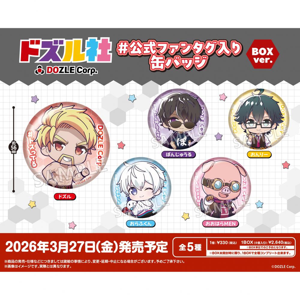 ドズル社のメンバーをモチーフにした、#公式ファンタグ入りの缶バッジが登場!