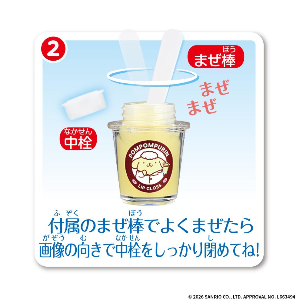 1.リップグロスの容器に、色の袋と香りの袋の中身をそれぞれ出し切り、マドラーでよく混ぜます。