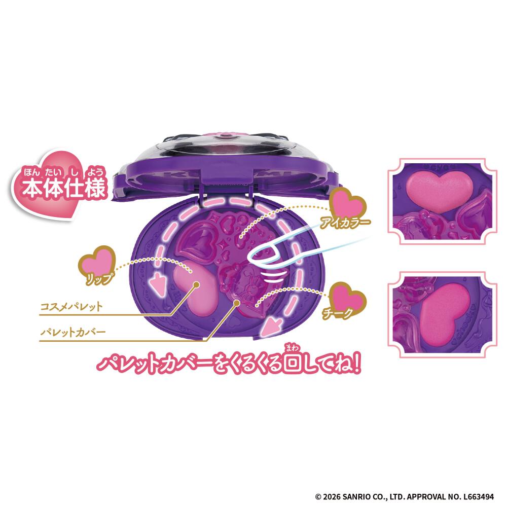 キャラクターパーツを回して、3種のコスメでメイクアップできます♪