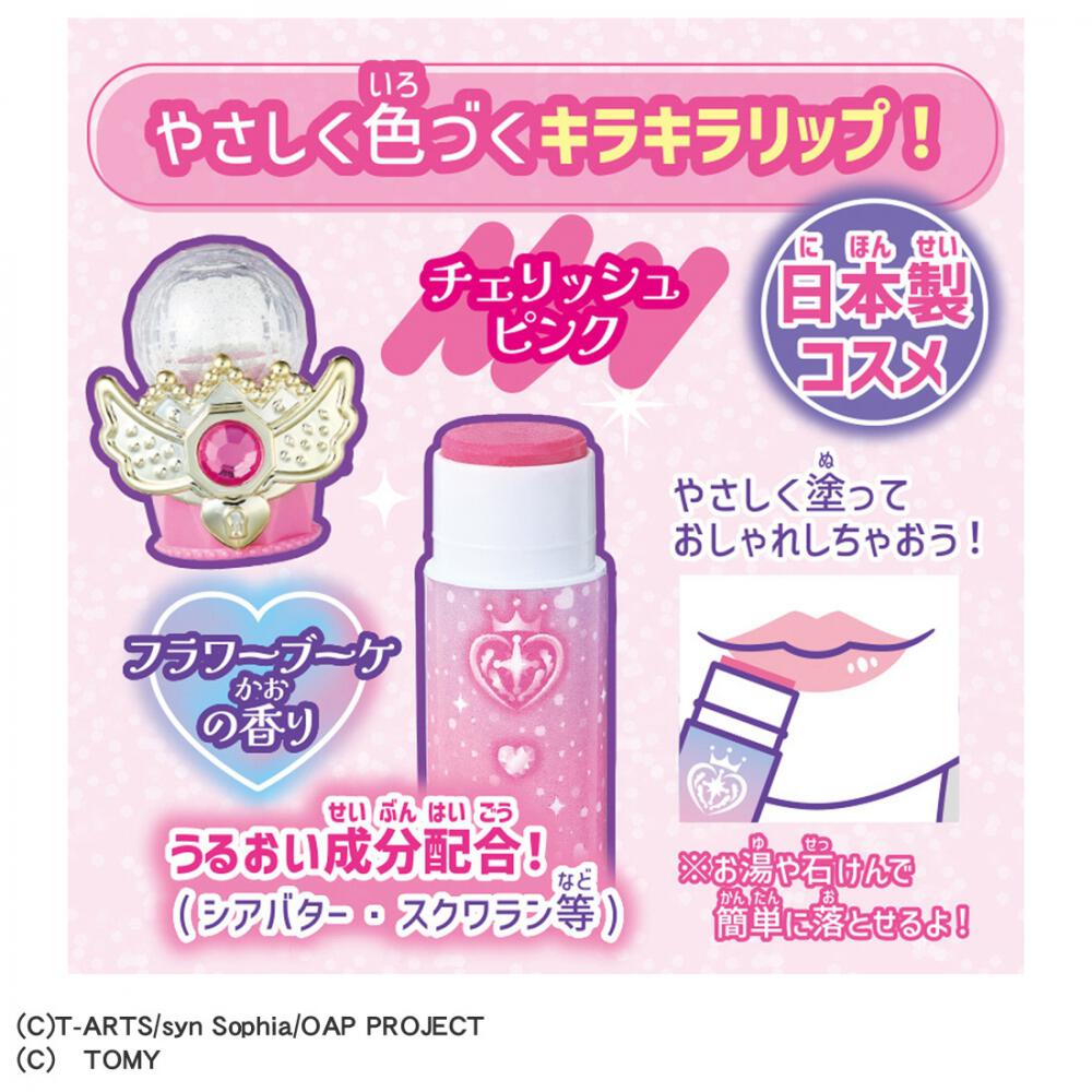 アミューズメントゲーム「アイプリバース」で使えるプレゼントコード付き。アニメやゲームで登場するリップとチークを、付属のストラップにつけて持ち運べるコスメセット。