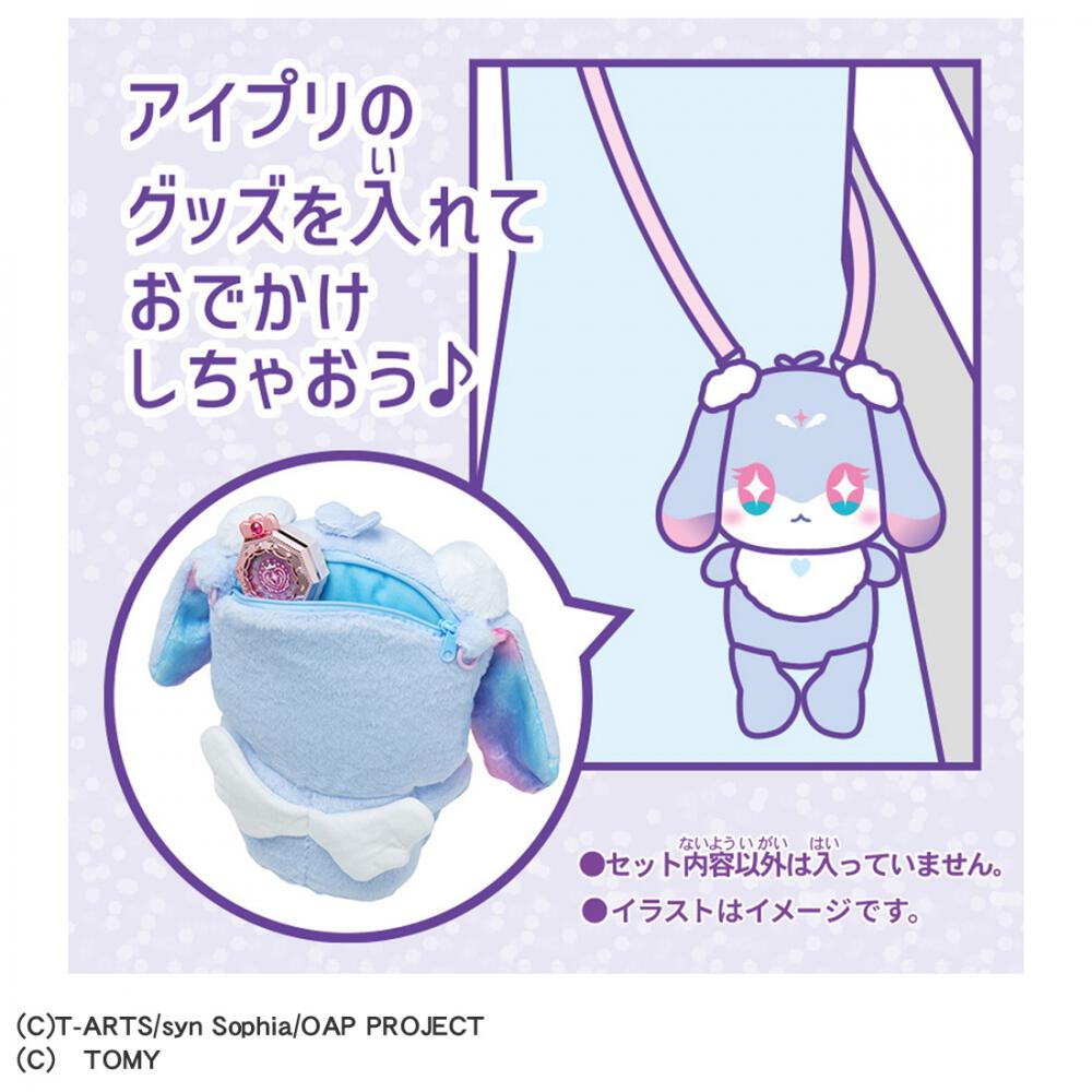 アイプリのグッズを入れて、いつでも一緒におでかけでき、ぬいぐるみ、ポシェットの2通りで楽しめます。
