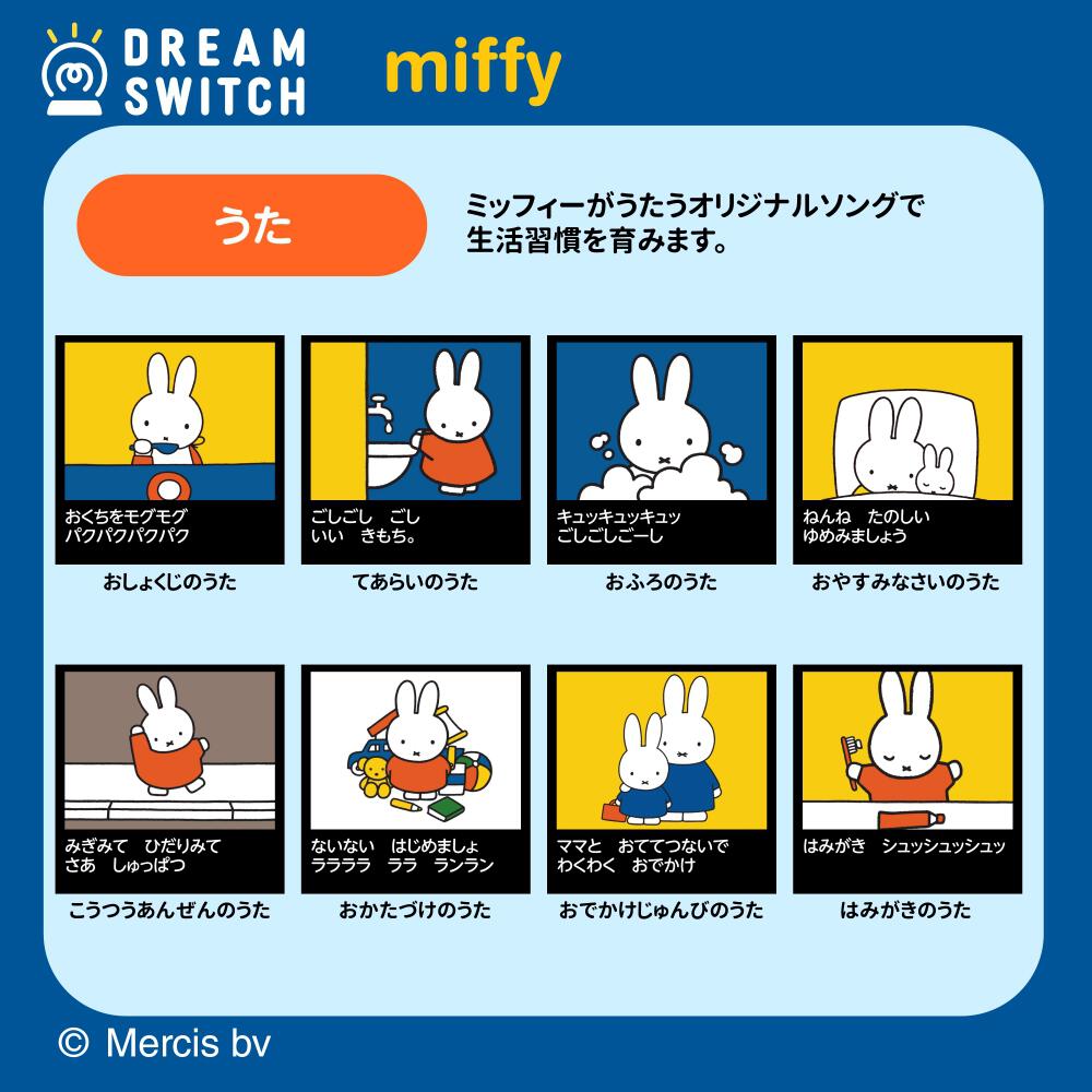 ●寝室の天井に大きく投影される『ミッフィー』のお話やオリジナルソングで、生活習慣を育む「DREAM SWICH」専用ソフトです。