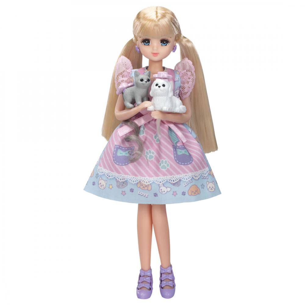<セット内容>人形(ドレス、下着、イヤリング着用)(1),クツ(1),ペットサロン本体(1),ペットサロンテーブル(シャワー、ドライヤー、バスタブ付き)(1),サイドテーブル(1),フードケース(フタ付き)(1),フードスコップ(1),フードパーツ(ほね)(4),フードパーツ(さかな)(4),お皿(1),じょきじょきハサミ(1),クシ(1),ワンちゃん(ホワイト)(1),ネコちゃん(グレー)(1),ペット用エクステパーツ(2),推しごとフレンズブック(1),紙こものシート(1),背面ボード(1),