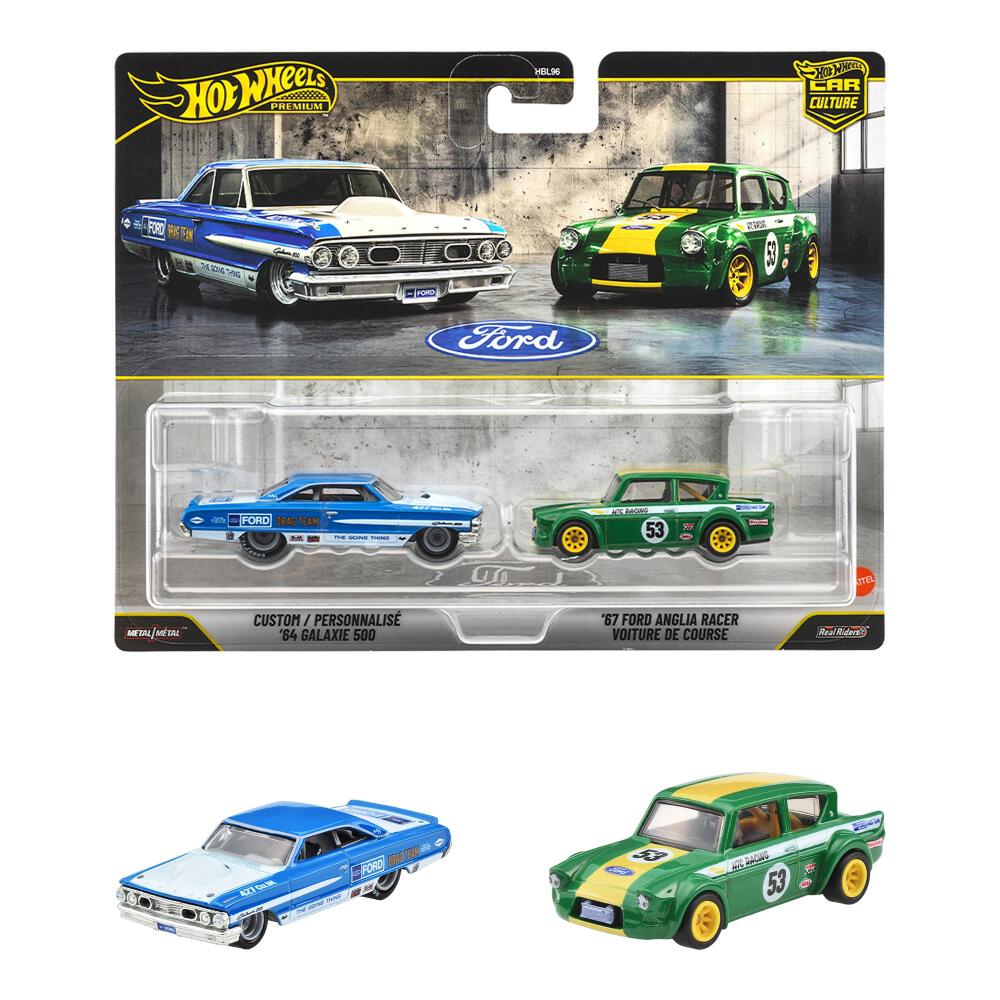 フォードながら、米国向けの’64ギャラクシー500と英国生産の’67アングリアという、性格の異なる2台を組み合わせたユニークなパック。ギャラクシーは大型セダンの最上級グレードで、1964年型は全長約5.3mの巨体に7Lエンジン仕様も存在し、ドラッグレースで活躍。一方、アングリアは『ハリー・ポッター』の“空飛ぶクルマ”で知られる第4世代をベースにしたレース仕様で、オーバーフェンダーやロールバーを備えたハードな一台です。 JHW50-9866