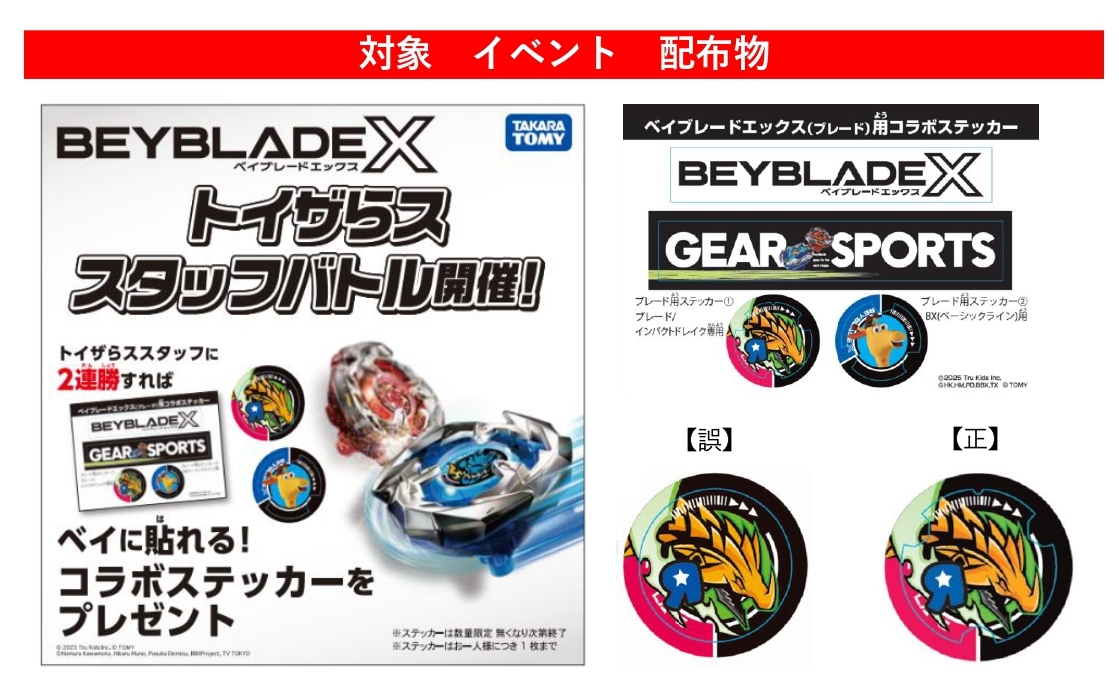 ベイブレードエックス「トイザらススタッフバトル」 コラボステッカーに関するお詫びとお知らせ