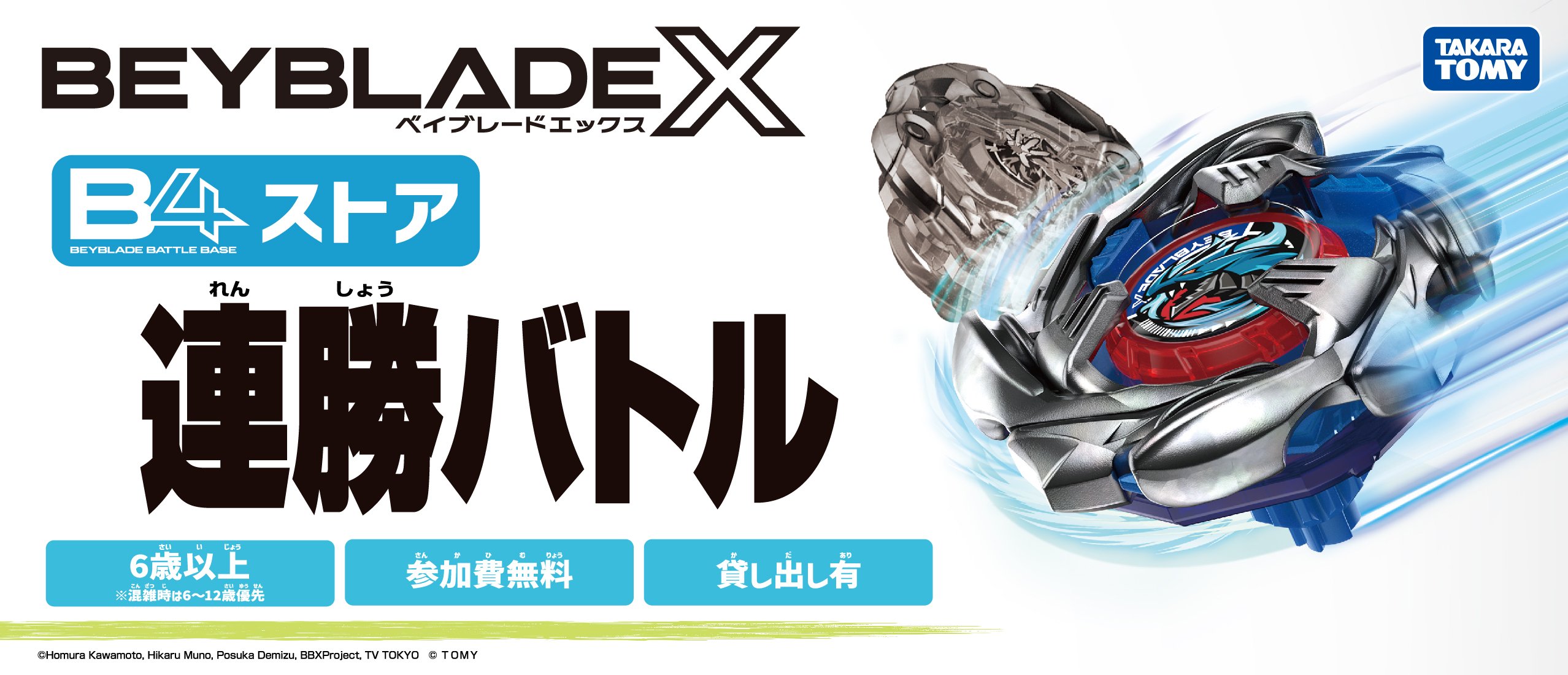 1ベイ1バトル制・3連勝したブレーダーには「BEYBLADE X B4ステッカー」贈呈。