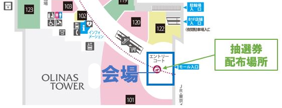 イベント当日下記の時間にオリナスモール「1Fエントリーコート」にて抽選券を配布します。